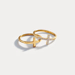 The Halo Cross Ring Set is a quiet statement — delicate, refined, and full of meaning. Each ring features a slender band with a miniature cross, set in radiant 14K gold-plated sterling silver. Worn together, they create a subtle stacked shimmer that moves with your hands and catches the light in all the right ways.
